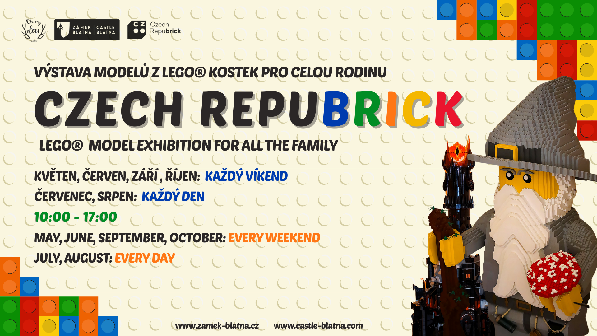 May 1 | 10:00 - October 31 | 17:00 Czech Repubrick – a LEGO® model exhibition for the whole family An exhibition that will put a smile on your face Castle Blatná will be under construction again this year — not scaffolding, but lots of LEGO® bricks and ideas. From […]